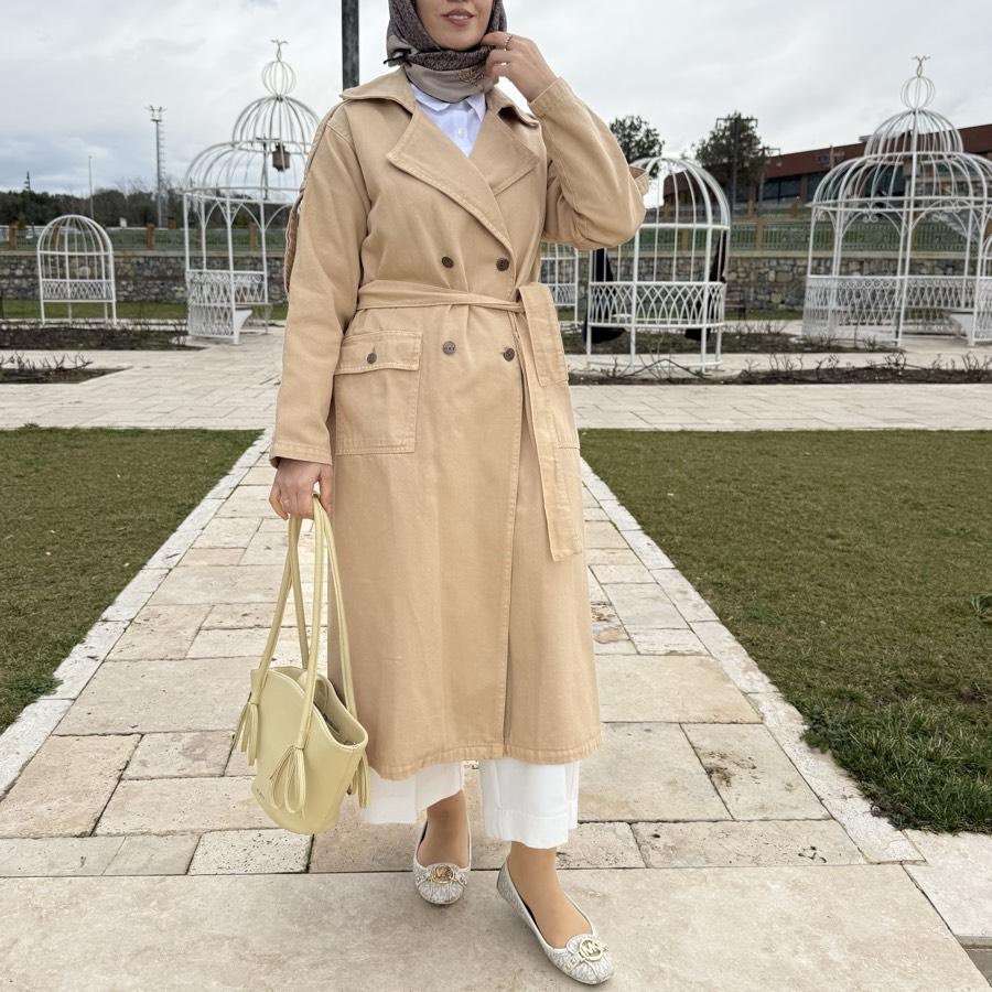 Denim trençkot/bej