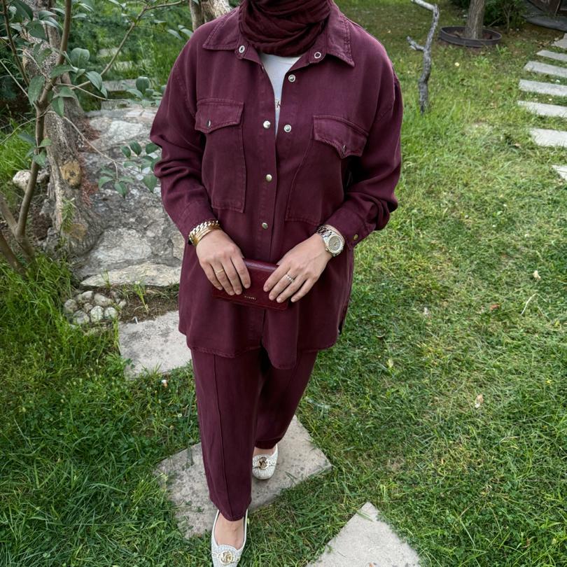 1/2/3 olarak 36/46 beden aralığındadır Tensel kot kumaştır pantolon bel kısmı lastiklidir havuç modeldir Gömlek uzunluğu 80 cm dir