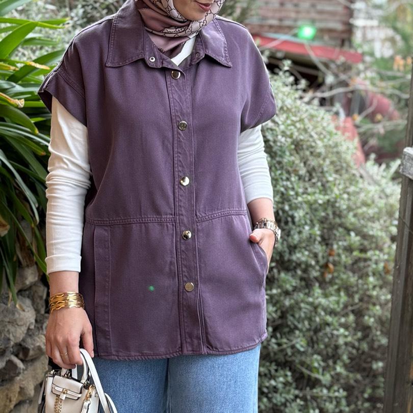 Tensel kot yelek/mor